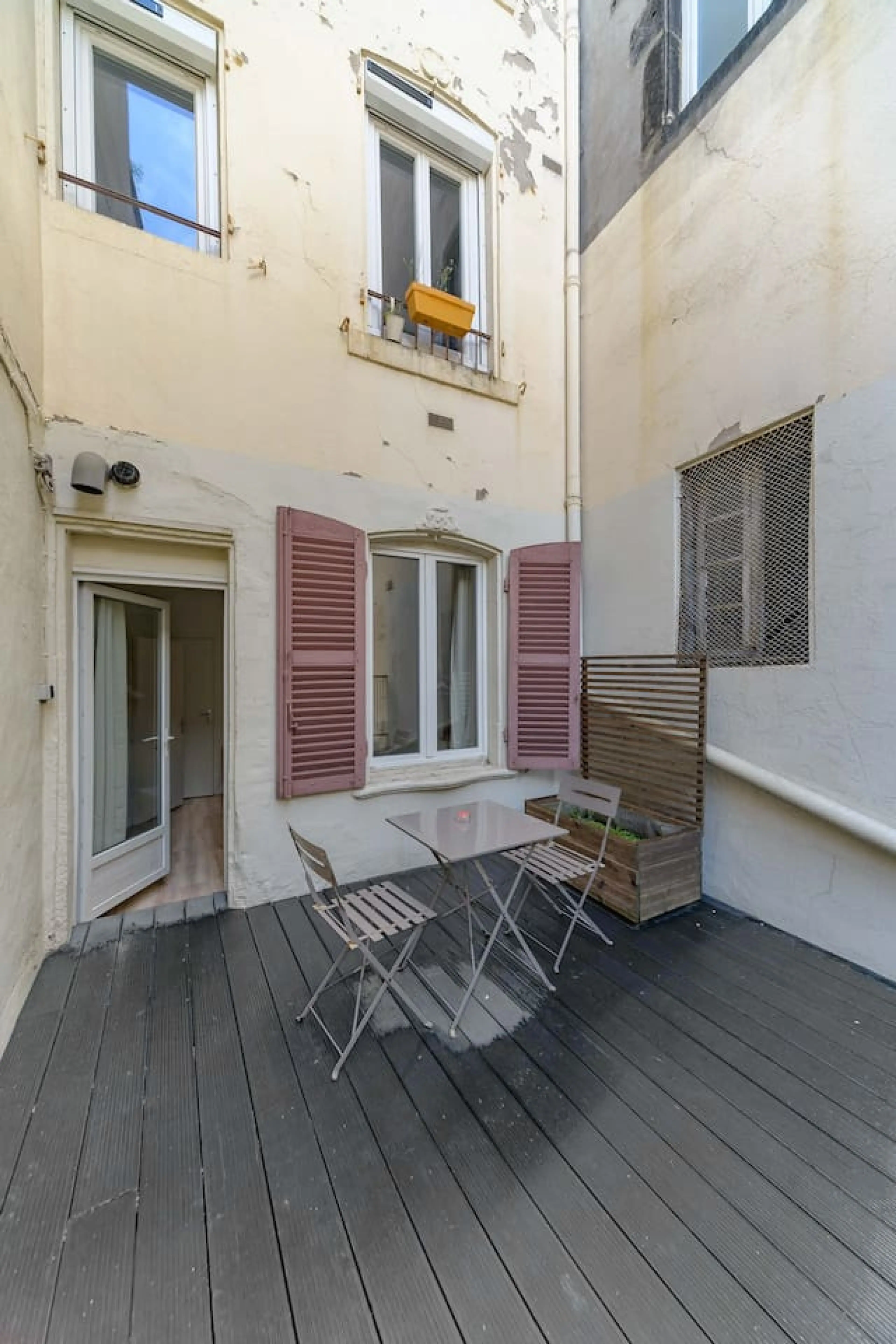 - et surtout la porte fenêtre de la chambre donnant sur la terrasse ne ferme pas. Elle s'ouvre toute seule et ça, je pense que c'est le plus gros point noir